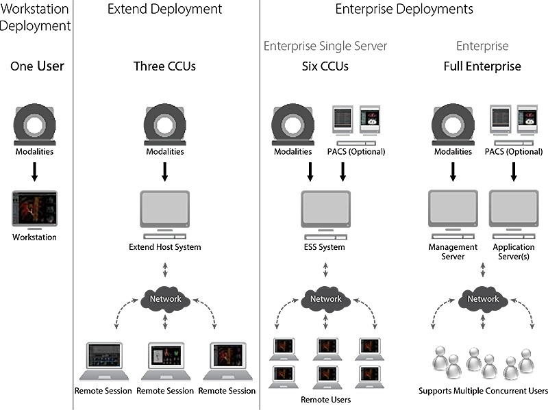 • VITREA ENTERPRISE: Es una solución de visualización avanzada multimodalidad, escalable, para toda la organización, desde 6 usuarios concurrentes, escalable a solicitud. Proporciona soluciones clínicas mediante el acceso de clientes desde cualquier parte de su organización médica.